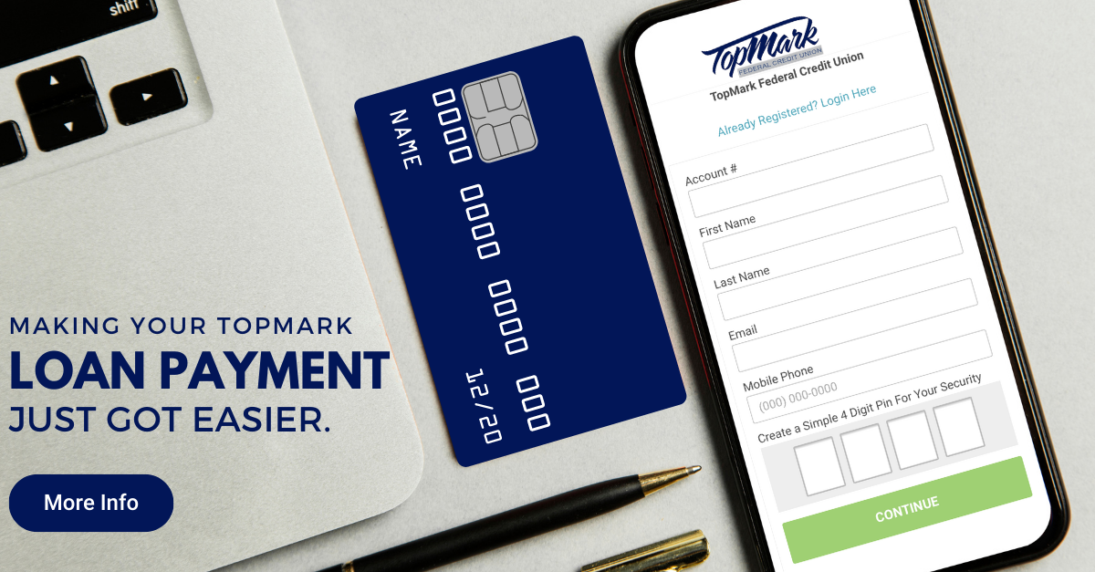 Use our secure online banking service to transfer your TopMark loan payment from your TopMark checking or savings account. You can also call a TopMark branch during business hours to have a member service representative make the loan payment transfer for you. You can even set this transfer to take place automatically every month.