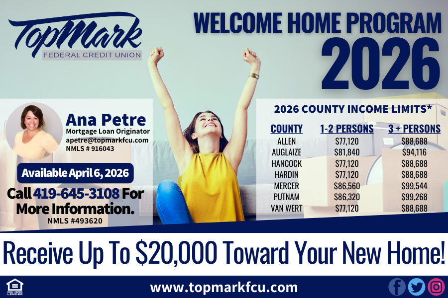 * TopMark is pleased to offer the Welcome Home Program through the Federal Home Loan Bank of Cincinnati.
